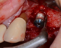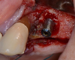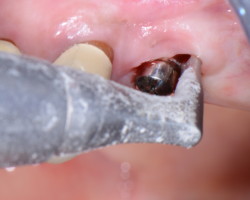 - Phase étiologique : Contrôler l’infection. Décontamination de la surface implantaire au moyen de l’aéropolisseur avec la buse pério + glycine.
